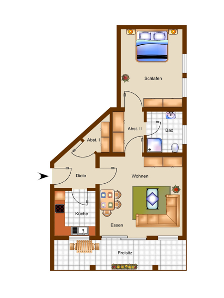 | Wohnfläche | 49 m² | Anzahl Zimmer | 2 |
