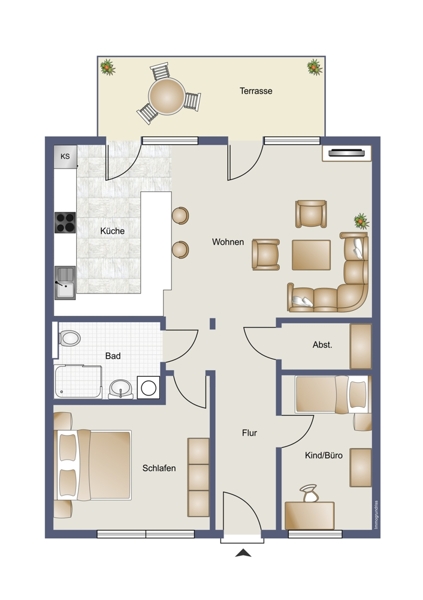 | Wohnfläche | 86 m² | Anzahl Zimmer | 3 |