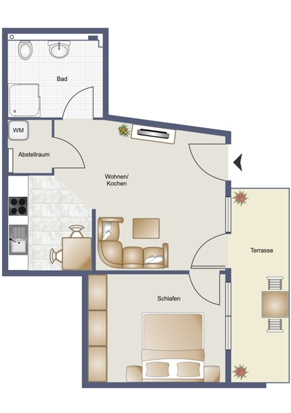 | Wohnfläche | 51 m² | Anzahl Zimmer | 2 |
