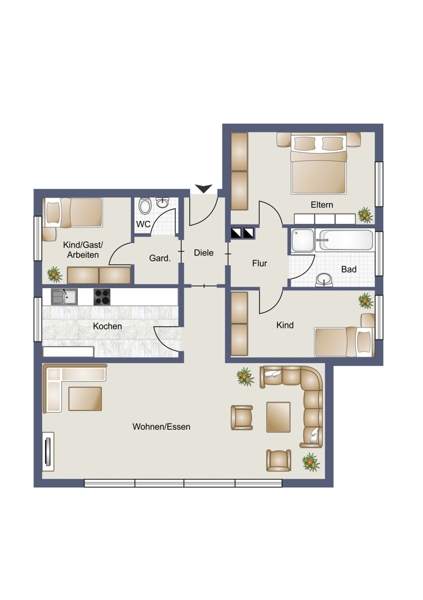 | Wohnfläche | 96 m² | Anzahl Zimmer | 4 |