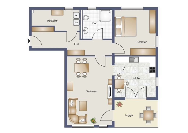 | Wohnfläche | 82 m² | Anzahl Zimmer | 2 |