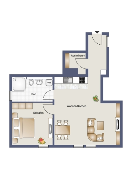 | Wohnfläche | 60 m² | Anzahl Zimmer | 2 |