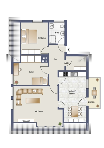 | Wohnfläche | 94 m² | Anzahl Zimmer | 3 |