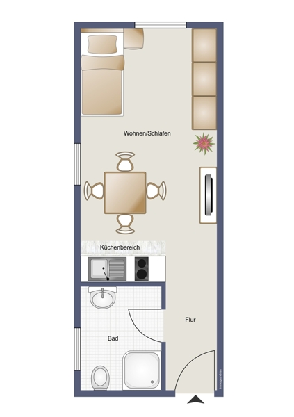 | Wohnfläche | 24 m² | Anzahl Zimmer | 1 |